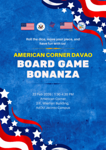 The American Corner Davao, in collaboration with American expats, invites foreign and Filipino students & youth leaders to an exciting Board Game Event on February 23, 2026!